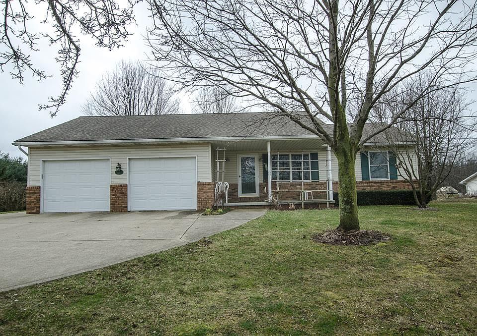 You'll appreciate the setting of this cozy 2-3 bedroom ranch home which is located conveniently to everything, and also offers country views of your stocked pond, woods, and local wildlife. The hobbyist will enjoy the outbuilding with 2 overhead doors, concrete floor and electric as well as the raised garden beds and small greenhouse for the warmer seasons. This home was converted to natural gas in 2018, boasts newer windows and a rear sunroom, and offers an attached 2 car garage. Come & imagine making this retreat into your everyday home.