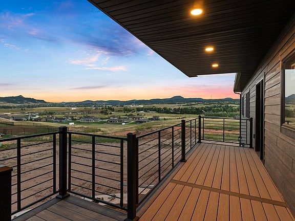Panoramic views from this home are STUNNING and are so incredible from this newly constructed ranch style home located in the Top Shelf Subdiviison! Watch the sunrise over Lookout Mountain and the sunset over Crow Peak daily! What a dream come true! This is main level living at its finest with top notch finishes and a total of 5 bedrooms and 3 full bathrooms on approximately 1.19 acres! The appliance package includes stainless steel Samsunge kitchen items/gas range and a LG washer & dryer set! There are 3 bedrooms on the main level with a huge master suite that has a huge walk in closet and the living room area has a corner gas firplace to keep you nice and warm during the winter months! There are two covered TREX decks for you to enjoy the beautiful Spearfish weather when the days are just right! East facing front covered deck and a west facing covered back deck. Grill or enjoy dinner outside even if its raining or snowing. There is an oversized three car garage for all of the extras you have to store. You can retreat to the HUGE walk out basement for tons of extra living space, relax or entertain by the nice wet bar area, get cozy by the 2nd gas firlace in the family room area, and enjoy the conveninece of having 2 additional bedrooms and 1 extra bathroom! There are so many awesome features to this incredible home you must see them for yourself!