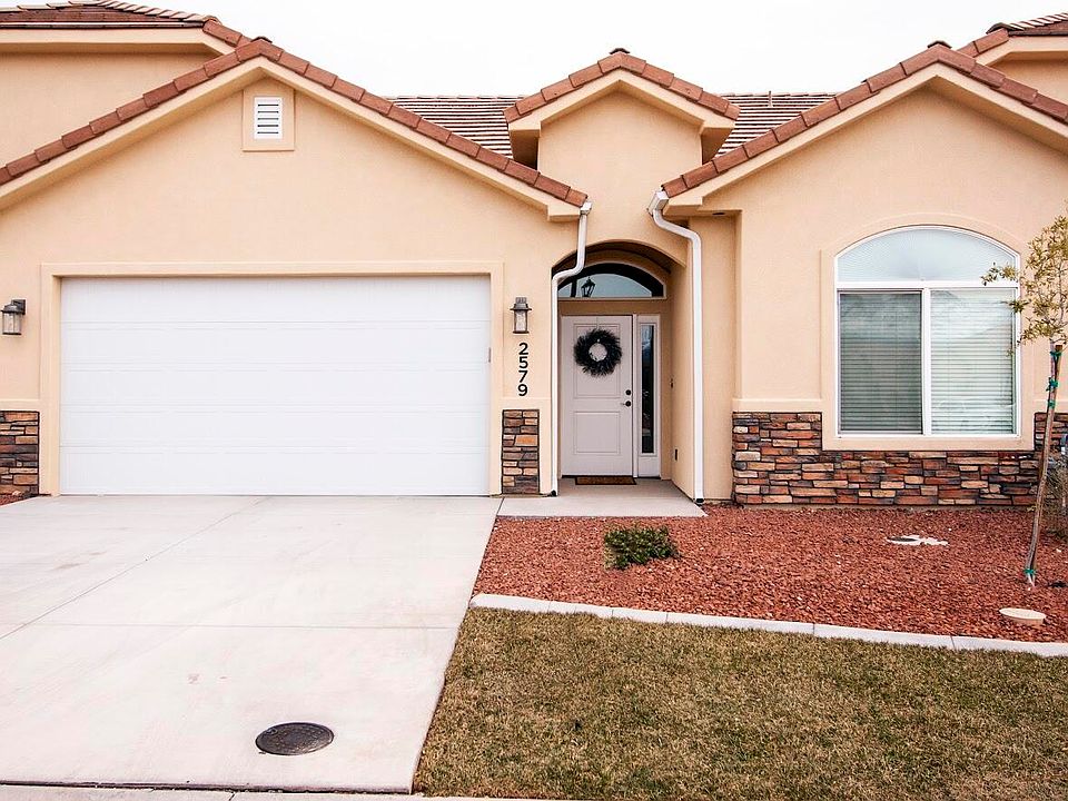 BEST DEAL ON THE MARKET!! PRICE REDUCED FOR QUICK SALE! Beautiful and elegant townhome . Excellent color choices present an open and light living space that shows like a model home. Granite counters throughout, attractive tile flooring, ample storage and cabinets in the kitchen, tastefully tiled shower areas in both bathrooms, high ceilings and relaxing outdoor area with covered patio. All living room furniture (with exception of the lamp) as well as the dining room set are included in the sale. This property is close to everything; schools, recreation, medical services and easy access to SR 9 and I-15. Short drive to Quail Lake and Sand Hollow recreational areas. Don't miss out on this charming property. Perfect as a second home or first time buyer. Buyer to verify information.