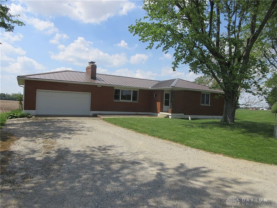 Country Living at it's Best. Property is surrounded by farm fields on 3 sides. Occupancy at closing. Large brick ranch with a vinyl sided rear addition totaling 2,386 sq. ft. of living space per PC Auditor. Home was built in 1964 and 3 of the 4 bedrooms have hardwood floors. Entering the home through the front door you have a small entry area then enter the 26x11 living room with a WBFP that previous owner didn't use. Next enter the 18x11 kitchen with a corner cupboard and lots of very nice cabinets. Refrigerator, range, and dishwasher but not warranted. The 3 bedrooms in the original section of the home are, 16x11, 12x9, 11x11 and a hall bath near by. Now entering the room addition you will find a 12x12 room that could serve as a dining or rec room. Proceeding down the hall you have a 8x6 laundry another bath with stand alone shower. Across the hall you will find the 25x11 master bedroom with a walk in closet. All closets have lights. There is a large basement divided into rooms and access to the crawl space plus another fireplace wasn't used by previous owner. Back on the main level go out the side door to a 19x16 Florida room with outside access or you can enter the attached garage. Car lovers will enjoy a detached 36x24 garage and a small shed. Home has a metal roof and is heated by fuel cooled by central air. Property is located half way between Eaton and Richmond and 4-5 minutes to I 70. Priced for a quick sale. SOLD AS IS.