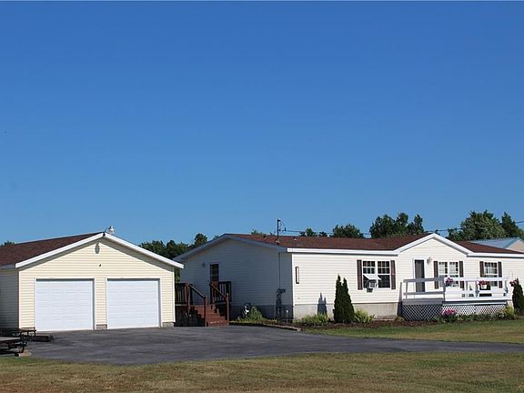 A very nice doublewide in quiet neighborhood. 3 bedrooms 2 baths. Large eat in kitchen with tons of cabinets and counter space, Gas fireplace in the Living room/Dining room. Detached 2 car garage with a side overhead door for mower access, plus large storage barn. Rear deck with hot tub and screen room. Paved driveway with extra paving beside the garage to park a trailer or boat, etc.. Close to Fort Drum and Watertown but with a country feel on a quite dead end road. Large front and back yard. General Brown School District.
