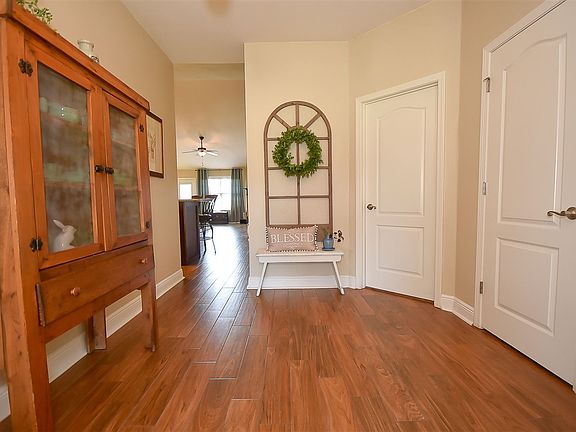 Spacious home located in the quiet subdivision, Rolling Meadows, just off County Road 64 to make for easy access to I-10, shopping, and dining. Rolling Meadows is across the street from the future Belforest Elementary where children will be able to safely walk to school along the subdivision's sidewalk-lined streets. Split floorplan allows for privacy, while drawing everyone into the center of the home where you will find large open concept living/kitchen with high vaulted ceilings, a corner fireplace, and sitting area at the bar. The separate dining room with crown molding is the perfect size for a large table with plenty of room for buffet or china cabinet. The master suite boasts a seating area, large walk in closet, custom tile shower with bench seat, garden tub, and separate water closet. The laundry room is conveniently located just off the double car side entry garage. The fully fenced backyard includes fig tree, peach tree, and large storage building - it also backs up to a nice commons area. If a spacious home in the perfect location is what you're looking for, this is the place for you!