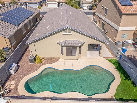 Welcome to this beautifully updated home in the desirable Westpark community of Buckeye, Arizona. Featuring LVP flooring in all bedrooms, fresh interior paint, new baseboards, and upgraded ceiling fans. Remodeled primary bath with custom tile shower, stylish vanity, with new mirror and lights. Enjoy the benefits of a whole-home RainSoft water softener system with reverse osmosis drinking water. The outdoor space includes a 2022 poured concrete patio and low-maintenance turf, perfect for entertaining around your pool. New pool pump, updated pool auto-fill valve, garage storage racks, and a smart thermostat. This home seamlessly combines modern amenities with comfort.