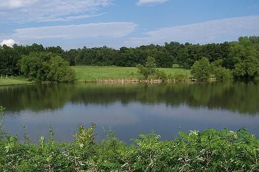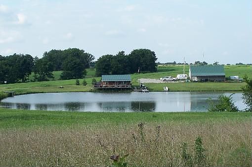 The only audible sound is a train in the distance or maybe a bass jumping out of the water. Perch, crappie, bass & red eared sliders come when you whistle and stay around as long as you are sitting on the 42x10 cantilevered deck. A 2nd deck 20x10 has the grill & pump pulling water out of the lake for watering flowers or power washing vehicles. Well placed docks, or off the covered deck make fishing in this 3 acre spring fed lake fun. Just drop your hook if you want a fish in this very clear lake. Trophy bass almost everytime. 27' deep at the dam. Retreat inside the 1000 sq. ft. custom cabin, 2 bedrooms, full kitchen, bath with jetted tub & steam shower, spacious great room, ceramic tile & carpet on the floor, painted walls, thermal windows, heat pump, plenty of windows to see the spectacular views. 28x42 barn with 10x42 shed on the side, concrete floor/overhead door/200 amp service/workbench. Every evening the largest deer in the county can be seen coming down off the hill to get a drink out of the lake. Pheasant & turkey make an appearance almost anytime from the wooded areas. There are mowed trails through the 50 acres that make hiking, horse back riding, or viewing the scenic sights of the Lowland Hardwood Forest from a golf cart possible for anyone. These forests are almost extinct in Missouri. Live full time or come on your time off. All utilities. This is a rare find in Bates Co. MO outside of Butler. Travel to the rock low water bridge over the Marais Des Cygnes River. Property can not be view from the road, you have to have directions. Call Listing Agent Mary Coffman 660-200-6033 for info