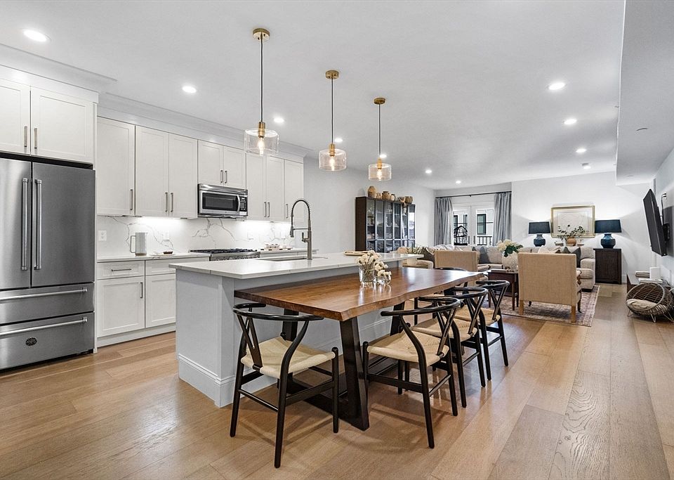 WELL APPOINTED CITYSIDE 3 BED W/ TWO DEEDED GARAGE PARKING SPOTS AND TWO PRIVATE OUTDOOR SPACES! THIS STREAMLINED PROPERTY PRESENTS AN OPEN LAYOUT W/ AN OVERSIZED QUARTZ ISLAND, QUARTZ COUNTERTOPS, BACKSPLASH & BERTAZZONI APPLIANCES LEADING TO A MASSIVE LIVING ROOM W/ FRENCH DOORS TO YOUR PRIVATE DECK. KING SIZED ENSUITE FEATURES DOUBLE CUSTOM CLOSETS, PRIVATE BALCONY & A NEWLY INSTALLED GLASS ENCLOSED MARBLE TILE STEAM SHOWER W/ CARRERA BASKETWEAVE TILE FLOORING & ELEGANT GOLD HARDWARE. KING-SIZED GUEST BEDS W/ OVERSIZED BOW WINDOWS & GUEST BATH W/ WHITE SUBWAY TILE BATH & POLISHED FITTINGS. NUMEROUS SMART UPDATES INCLUDE BUT ARE NOT LIMITED TO FLAIR VENTING, CELLULAR WINDOW TREATMENTS & HUE LIGHTING W/ COLOR CAPABILITY & DIMMABILITY IN ALL OF THE RECESSED LIGHTS THROUGHOUT. ADDITIONAL FEATURES INCLUDE CUSTOM DRY CLEANING/STEAM SYSTEM, DEEDED STORAGE UNIT, VIDEO INTERCOM, AUDIO PACKAGE, CENTRAL AIR, IN UNIT LAUNDRY, WIDE PLANK HARDWOOD FLOORS, PROFESSIONAL MANAGEMENT & HEATED GARAGE.