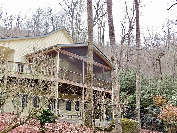 Nestled on a private 3 acre lot in the beautiful Glen Cannon subdivision this lot offers privacy, small natural waterfalls and stream, native rhododendron and nature trails. On the main level you will enjoy an open living space with a vaulted ceiling, skylights, hardwood flooring and glass doors to outside spaces. You will love entertaining on a large screened porch that overlooks a small stream. The primary suite is located on the main level with nice bath with double vanity and walk in shower. Also on the main level there is another guest room, laundry room, office, library or hobby room plus a 3 car garage. Basement area offers a family room, bedroom #3, bonus room, bath, laundry and storage rooms. Long gravel driveway meanders among the rhododendron to set the house back from the road.