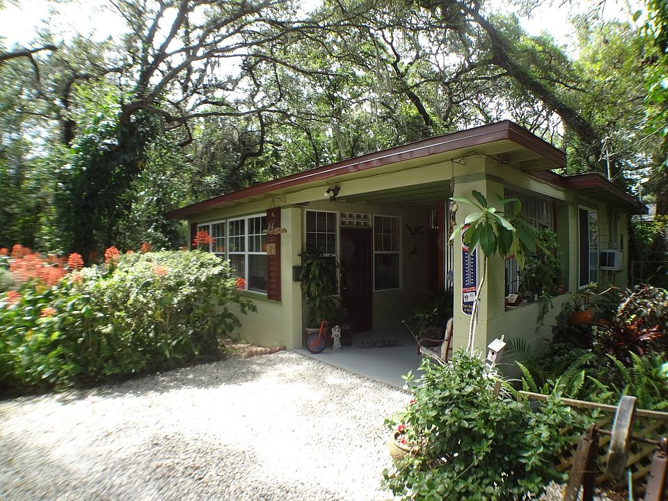 Every home has it's story, let us help make yours! This half acre property is equipped with mature landscaping and country charm! Adorable bungalow features covered front porch, new windows throughout, inside utility room, 2-car carport with storage room above, screened porch with wet bar, wood deck patio for entertainment and a men's outhouse! Bright florida sun room is your entrance/foyer, sunroom opens to the family room with wood beam ceilings. Kitchen breakfast bars overlooks the spacious family room. SPLIT-FLOOR PLAN! Master suite has incredible large picture window, ALSO double doors that lead to wood deck patio off the back of the home. All bedrooms include ceiling fans. Interior utility room. 2-car carport is situated behind the home and includes 10x15 storage space above carport. Screened porch attached with running water! This home is full of country character! Call today for a private showing!