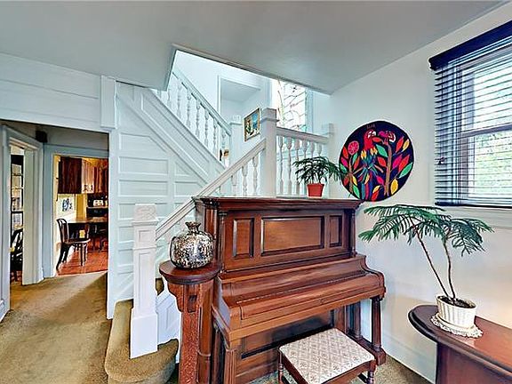 Tucked away at the end of Allegheny Avenue, this home offers character on a beautiful .8 acre home site. Spacious entry offers turned staircase with stained glass window at landing. Wide opening to living room with decorative fireplace. Formal dining room with decorative fireplace, built-in china cabinet, and window seat. Kitchen offers dual bowl sink and access to rear staircase. Second floor with four bedrooms and full bath. 3rd floor family room (currently used as master bedroom). Low maintenance covered deck with ceiling fan offers views of the private rear yard (double lot totaling .8 acre) with a blend of open and wooded areas. Updates include windows, vinyl siding, gutters/soffit/fascia, attic insulation, and boiler. Two level driveways offer plenty of off-street parking.