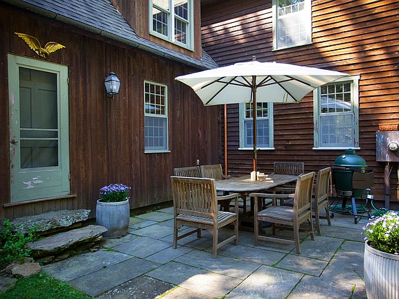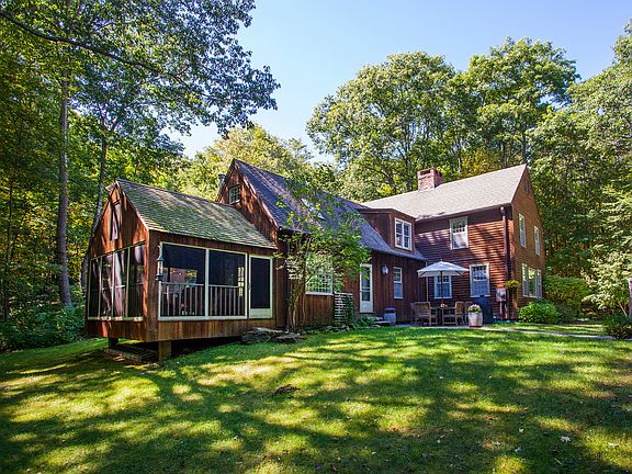 Character and charm abound in this chic three bedroom Colonial privately sited on 6.19 acres well set back from the road. Originally built by respected builder Noel T. Fisher, the home showcases gorgeous exposed beams, warm woodwork, and an oversized fireplace in the spacious living room. The heart of the home is the lovely dining and kitchen area complete with a vaulted ceiling, Jøtul woodstove, and French doors that open to a wonderful screen porch. As well, the home features a cozy mudroom plus an airy ground floor bedroom and full bathroom. The primary bedroom suite with private bathroom, one additional bedroom and bath, and a loft area (that can be used as an additional bedroom or home office) are all found upstairs. The lower level could be finished and features a full bath for extra space.Inviting you outdoors, the property boasts a lovely bluestone patio, heated gunite pool, large detached barn, as well as a fire-pit great for summer cookouts. The perfect country getaway.