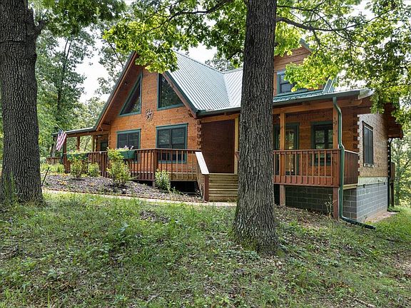 Discover your own piece of paradise in this charming log cabin nestled on 80 acres within the serene Ozark Mountains of SW Missouri yet close to NWA. Behind the gated entrance you'll find an expansive property with beautiful mature trees, four ponds, and rolling pastures seeded with rye and fescue in 2024. Built in 2015, the cabin boasts rustic charm with its classic log construction. Once inside, your attention is immediately drawn to quality Amish craftsmanship and the magnificent floor-to-ceiling stone backdrop for the wood stove. The living area exudes warmth and comfort, featuring exposed beams that add character and charm. The large windows allow natural light to immerse the living space and provide picturesque views. The new shop built in 2024 is 40x60x11 and has two 10' automatic garage doors, electricity, and clean concrete floors. This beautiful home and unrestricted land provide the perfect blend of privacy, natural beauty, and a peaceful atmosphere away from the hustle and bustle.