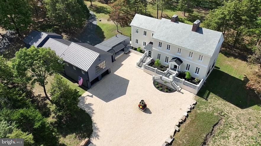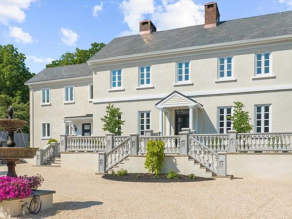 Nestled on 12 picturesque acres overlooking the serene Delaware River in Tinicum Township’s River Cliff enclave, this unique villa-style residence exudes European charm and sophistication. A long private driveway leads you to this meticulously restored 3-bedroom, 2.5-bath home, where vintage elegance seamlessly blends with modern comforts. With over $1.2 million invested in recent renovations, every unique feature of this home has been carefully considered. As you step through custom French doors, you’re greeted by a stunning foyer adorned with beautiful and timeless white and jade green checkerboard Italian marble. This exquisite flooring sets the tone for the home’s refined ambiance, complemented by a jade-accented gas fireplace that invites you to linger. The expansive living room showcases original wide plank hardwood floors, two enchanting Juliet balconies, and elegant pocket doors, creating an inviting and sophisticated atmosphere. At the heart of the home is the chef's kitchen, designed for culinary inspiration. It features the highest quality Brazilian Tempest Crystal Extra quartzite, a magnificent 15-foot island, bespoke cabinetry, and luxurious quartzite countertops. Equipped with premier Viking appliances, including a 6-burner gas range and a cozy wood-burning fireplace with a built-in pizza oven, this kitchen is a culinary haven. A thoughtfully designed walk-in pantry completes this impressive space. Ascend the switch-back staircase to discover the primary suite, a true retreat featuring an open-concept walk-in closet and a gas fireplace that adds warmth and charm. The ensuite bathroom is a luxurious escape, showcasing the highest quality Italian Calcutta Gold marble, a clawfoot tub, and an opulent marble walk-in shower. Outside, the property enchants with a rear bluestone patio and front steps adorned with handcrafted balustrades by Vytas Ornamental—an exquisite touch of artistry. This outdoor space is perfect for gatherings and relaxation. A detached outbuilding houses 5-car garage and loft/in-law suite space, providing an abundance of space for cars or hobby enthusiast space along with flexibility in having guests, in-laws or private office space. This European-inspired villa is more than a home; it’s an invitation to embrace a lifestyle of elegance and tranquility, surrounded by the natural beauty of Tinicum Township. Conveniently located just 11 miles to downtown New Hope, PA, and approximately 70 miles to NYC, 51 miles to Philadelphia, 60 miles to EWR, and 58 miles to PHL, this residence offers both a peaceful retreat and easy access to urban amenities, ensuring you're never far from what you need. With its thoughtful renovations and exquisite features, this home is a true masterpiece waiting to be cherished.