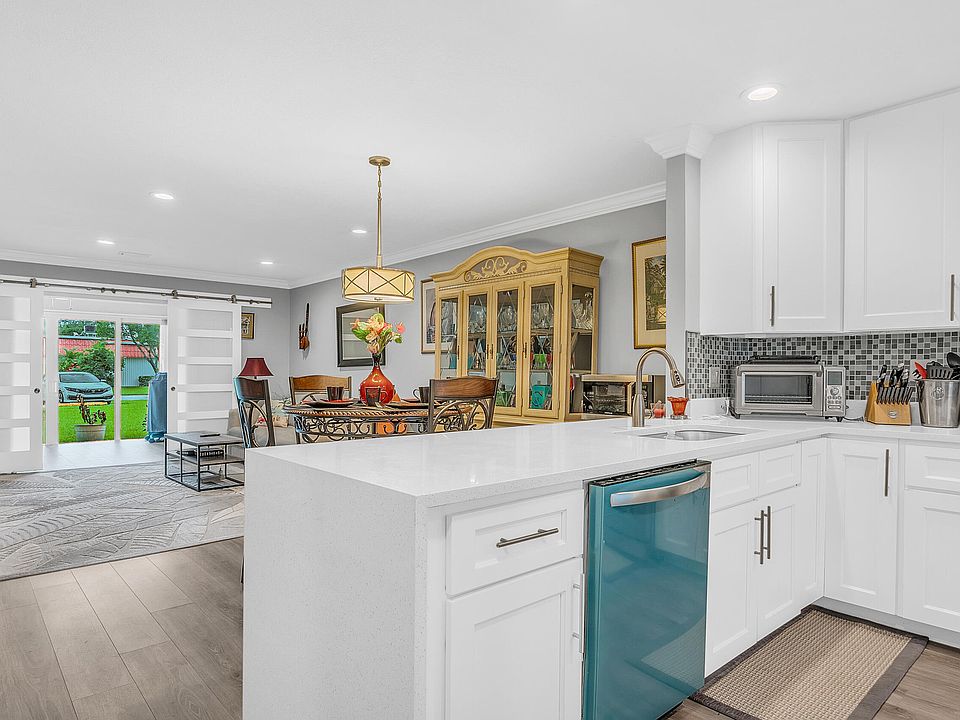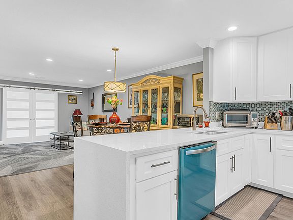 Discover upscale living in this fully remodeled villa, set in the vibrant 55+ Covered Bridge community. Boasting 2 spacious bedrooms & 2 modern bathrooms, this home is a blend of luxury & comfort. The kitchen shines with white shaker cabinets, quartz countertops, and stainless steel appliances. Impact windows, a tankless water heater, and a newer A/C assure modern conveniences. Luxurious flooring enhances every room, while an integrated patio offers extended living with bonus storage. But the true gem lies in the community amenities: enjoy leisurely strolls on scenic trails, dive into refreshing pools, engage in diverse club activities, and build friendships at communal events. Your sophisticated, active lifestyle awaits in this haven.