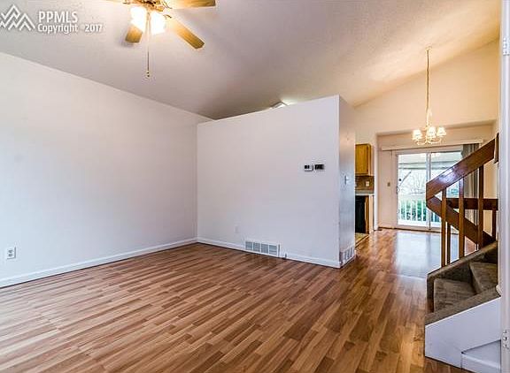 Charming starter home close to Ft. Carson and schools! This home boasts soaring ceilings, new carpeting and linoleum, newly renovated master bath, new appliances and a brand new roof. Additional features are energy efficient windows, covered back deck with amazing Mountain Views, security system, central air conditioning, 4 bedrooms, 2 bathrooms with a wood burning fireplace, fenced in backyard and an attached 2 car garage. Light and Bright with plenty of space to enjoy Colorado living. The entry when you walk in is tiled with a nice closet for coats and jackets. There are high ceilings that extend to the front living room with a ceiling fan to keep the air circulating. Walk into the dining area which is open to the kitchen and walks out to the covered deck complete with fantastic Mountain Views. The backyard is fenced with mature trees for privacy and shade. Inside the kitchen has new flooring with all brand new black appliances included. Upstairs there is new carpet which extends into the bedrooms. Master has its own en suite bathroom. The master bathroom has been fully renovated with a new vanity and a walk in tile surround shower. There are two additional bedrooms up with a full spare bath. The lower level has new carpet as well with a brick surround WOOD burning fireplace! The attached garage enters on this level. Downstairs you have a rough in for another bathroom, the laundry area and another 4th bedroom with new carpet and two closets. Plenty of room in this home! There is an alarm system already installed, central air conditioning to cool off, new interior paint and flooring and newer energy efficient windows and a Brand new roof. Enjoy being so close to Ft. Carson, schools, shopping and more! Don't miss this little gem!