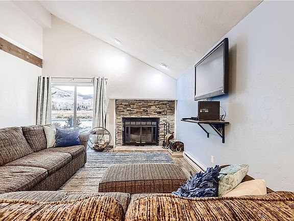 This end unit is light and bright with vaulted ceilings and a wood burning fireplace. Three bedrooms and two full baths are on the main floor and one bedroom and full bath is upstairs. There is a nearly new washer and dryer in the unit, upgraded appliances, newer windows, and lots of great closets and storage. Low HOA dues at $310/month. Super convenient Summit Stage stop on Cove Blvd. Nice patio and yard to enjoy year round. Great neighborhood close to hiking, biking, skiing, and lake Dillon.