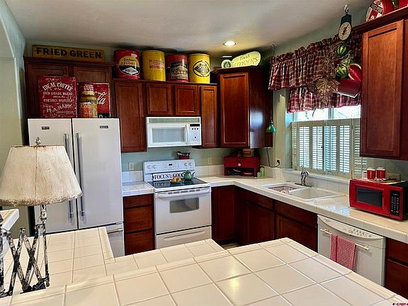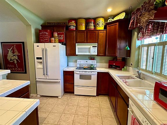 Immaculate and adorable 2 bedroom, 2 bath townhome with a 2 car attached garage. This well maintained townhome has a roomy kitchen with white tile countertops, a refrigerator with ice and water through the door, an electric range, and a breakfast bar. The living area has a sliding glass door out to the courtyard. The primary bedroom features a large closet, and a roomy bathroom adjacent. The home has a fenced courtyard that is perfect for a barbecue, or to let your dog out. The lovely front yard has several mature aspen trees. The grounds are maintained by the community. Crossroads is near the downtown area, and convenient to shopping, entertainment, restaurants, and other amenities. This townhome community is very close to the hospital.