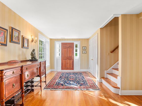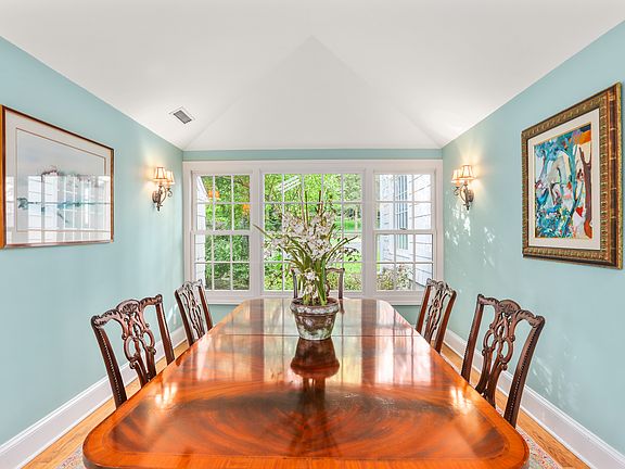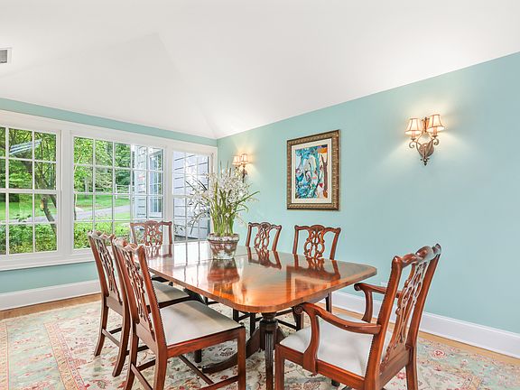Light is everywhere in this lovely Colonial on just over two flat, acres in New Canaan. Floor to ceiling windows,French doors and skylights fill this home with sun throughout the day. The "flow" of 258 Dans Highway is extraordinary and perfect for gathering friends or family. Enter through the gracious, twenty three foot foyer and walk straight ahead to a dramatic two story living room with a fireplace, cathedral ceiling and a wall of windows overlooking the garden area. A formal dining room can easily seat 10-12 guests.The kitchen/family room has a cathedral ceiling, French doors, oversized windows, and cherry cabinets. There is a large central counter with plenty of room for stools, a built in banquette and still more room for additional seating. The main level master bedroom suite contains three closets and built in dresser feature. Through two French doors is the updated marble bathroom with double sinks,a large shower and soaking tub. On the second floor are three more bedrooms including one that is ensuite,and a renovated hall bath. The third level is a large attic that can be finished as the perfect bonus room.The property is bucolic with garden areas, mature plantings,two stone terraces,a large flat yard and a tennis court! Whole house generator.Just three miles to downtown New Canaan.