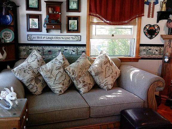 Cozy Home many built in features. First floor BR, Eat in Kit./ custom appointments to include Center Island w/ Slate Top.LR/Custom Shelving, Gas Fireplace.Rear Fenced yard, ready for entertainment. Kit. to include Grill,Frig, Sink/ Hot & Cold water. Great Patio/Deck, Landscaping. Fantastic for first time home Buyers or if you are looking to down size. Move in condition.Some furniture does convey