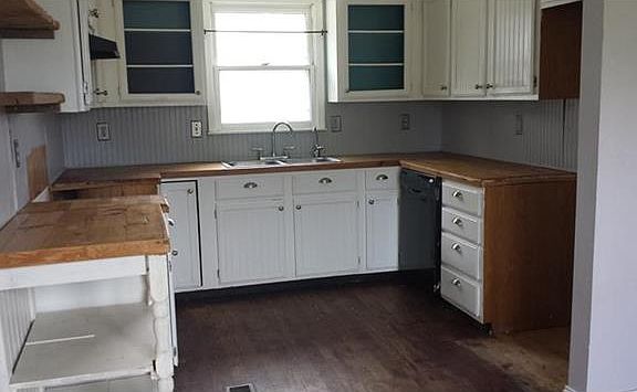 What a FUN SHABBY CHIC Home. Unique residence with lots of rustic accoutrements - reclaimed barn hardwood floors, wainscoting , artistic lighting ....this home was featured in Kansas City's INK Magazine. Charming Farmhouse feel in the city ! Finished lower level includes stubb for a bath. Handsome stone fire pit & cool outdoor living space. Fenced lot...One bed on the main two up. Darling Eat in Kitchen...Great Price for Cute House ...Seller will make small repairs but love to sell AS IS...home warranty included.