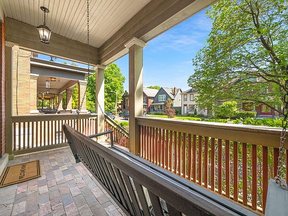 Steps away from Schiller Park! Perched up on a hill with an inviting front porch. This 2116 SQ FT condo has hardwood floors in living & dining rooms featuring decorative fireplaces in both. Large kitchen with island, tile floors, stainless appliances & convenient adjacent half bath. 2nd floor has 2 bdrms, built-in linen closet, small room that could be used as a walk-in closet or storage & massive full bath with tiled oversized tub/shower, double sinks & tile floors. Finished 3rd floor is perfect for 3rd bdrm or rec room. Full dry basement with block windows has ample storage. Fenced courtyard, off street parking for 1 car. Neighboring condo is also for sale making this an awesome opportunity to live on one side & rent the other. Location is a 10!