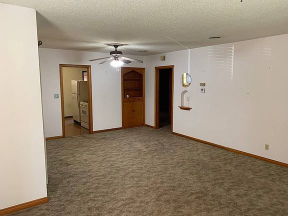 Main floor has a large living & dining area, kitchen with stove & refrigerator, 2 BR's and full bath. Laundry is on main floor & washer & dryer stay. Full unfinished basement. C/H&A. House has good vinyl siding and roof. 12 X 20 garage with big wide paved drive-way.
