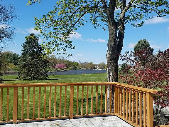 Unbelievable premium location with full view of the pond from the custom deck and patio! Updates include vinyl shake siding, trex deck, paver patio, thermopane windows including FR slider. Replaced Timberline roof, newer front and rear entry doors as well as garage doors. Floor attic space over garage/pull down stairs. Replaced HVAC system, wood burning custom fireplace, Custom bay windows in breakfast area and formal dining room. First floor bedroom presently used as an office.Updated kitchen cabinets and appliances, remodeled master and main bathrooms. Partially finished basement set up for great entertaining! This home has been meticulously maintained by the original owner with a custom addition affording a larger family room and possible in-law living arrangement. Beautiful Neighborhood!