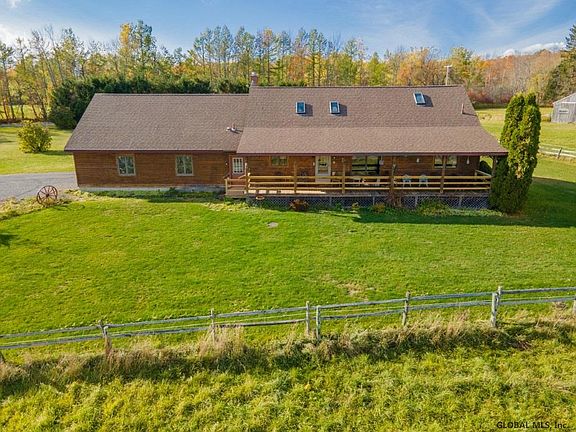 Horse/cattle ranch on 50 beautiful acres of rolling fields and meadows. Custom built 3 bedroom, 2 bath home in excellent condition. Open floor plan, cathedral ceilings, exposed beams, hardwood floors, tongue & groove knotty pine interior finish. Spacious covered porch, gorgeous views. 30x40 workshop, fenced paddocks, and year round brook. Borders 1700 acres of State land. Perfect farm setting. View entire farm from back porch.