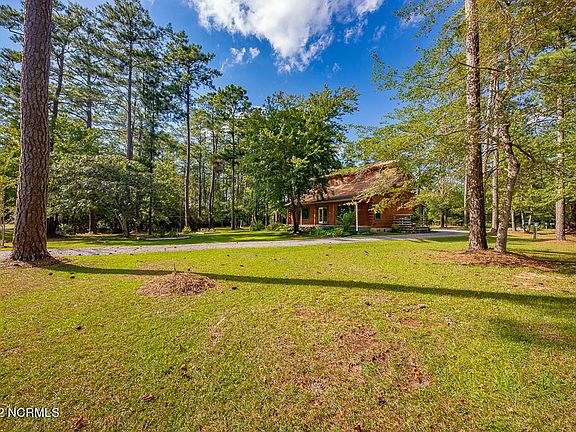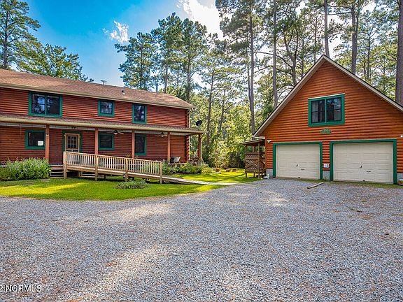 Looking for an idyllic get-away retreat to call your own? Take a look at this Southland Log Home, nestled on 2.5 acres just outside the quaint coastal town of Oriental, NC. The main home has a primary floor master suite with newly renovated bath, open living/dining/kitchen area with cozy wood stove. The loft area provides a guest bedroom and bath with a flex area for office/hobby or bunk area. The room over the 2-car garage is set up for comfortable guest quarters with mini-kitchen, full bath and open living/sleeping area. The grounds provide plenty of space for an outdoor shower, garden, fire pit and RV/Boat storage and circular driveway. A deeded boat slip on the community dock is just across the street where you can enjoy great fishing on Broad Creek, or enjoy paddle boarding and kayaking right off the dock.