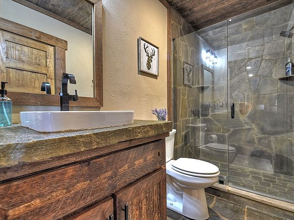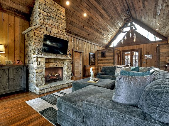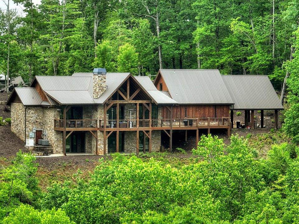 Luxury Mountain Living perfectly defined in this gorgeous mountain landscapes setting that meets refined aesthetics in this modern mountain home. These architectural marvels seamlessly integrate the raw beauty of their surroundings with the design & finishes of this home originally built by one of North GA's top builders, Keith Sumner. From the minute you step foot into the foyer, you'll find spaces that are both awe inspiring & deeply comfortable. 5BR, 4.5 BA's with every room having gorgeous mountain views. Open concept floor plan w/ lots of windows taking in the serene outdoors – Chef's kitchen features circle sewn custom kitchen cabinetry w/ natural stone countertops & backsplash w/ Viking Stainless Appliances + Butler's Pantry. Great Rm features soaring cathedral ceilings, floor to ceiling stone FP, reclaimed barnwood wood ceilings & walls & glass sliding doors that open the GR & DR to the outdoors making great indoor/outdoor entertaining areas. Lg. covered porch & deck spans entire length of back of home w/ outdoor living area w/ outdoor wood burning FP. Lower level stone patio offers fire pit & additional outdoor living space. Fin. Basement features Rec Rm/Den w/ stone fireplace & custom built wet bar great for entertaining. Home features a 2 car garage currently being used for modern style REC Rm w/ complete gas log fireplace & wet bar offering a secondary place to relax & unwind. Offering double garage doors offering that indoor/outdoor entertaining vibe complete w/ gas log fireplace & wet bar area. Double car post & beam style carport also attached to garage spaces. Full guest suite in finished bonus room above garage. Master suite features a custom bathroom that features a huge walk in rock shower w/ your own "personal rock waterfall" giving you the experience of living in the “the great outdoors”. Located in the Aska Adventure Area, the most prime location in N GA, nestled on 3.24 beautiful acres w/ some nice usable land surrounding home.