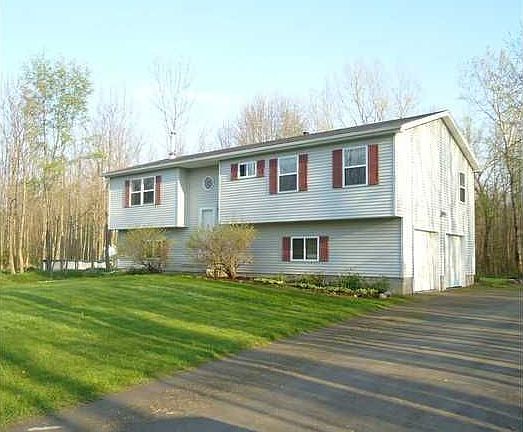 PRIVATE 6.8 ACRE WOODED SETTING surrounds this Beautiful One-Owner Bi-Level Home! Open Floor Plan! 4-Bedrooms *1-Bath *Impressive Oak Kitchen w/Breakfast Bar *Living Room w/Woodstove can heat whole house *Formal Dining w/French Doors to Elevated Deck & Secluded Backyard! Large Master Bedroom & 2nd Bedroom on Upper Level *Two Bedrooms & Laundry in Lower Walkout Level *Two Car Garage plus 24 x 40 detached Garage/Shop *Above Ground Pool w/Deck *Maintenance Free Vinyl Siding *Thermopane Windows * Central Air *Rough Plumbing for 2nd Bath on Lower Level *WEBSTER SCHOOLS!