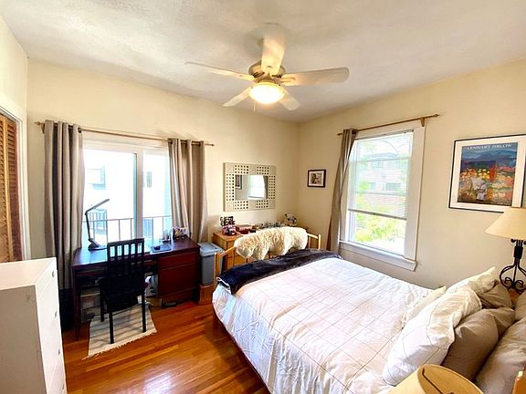 Imagine life in this spacious, beautifully designed 3d floor condo in the heart of Inman Square - just steps from many popular restaurants and one block from Whole Foods and Walgreens. Enter the sun-drenched 18 x 16 living room that feels even larger with its 9ft ceiling and vaulted skylight 13ft above you. Five windows and recessed lighting surround this elegant living space that can double as a dining room. Proceed to the stylish kitchen with plenty of cabinets, quartz counters, Mediterranean tiling, overhead and under-cabinet lights, another vaulted skylight and a closet with a new washer/dryer. Down the hall is your bath with sea stone floor tiles, plus a large master bedroom with two closets, ceiling fan, a window and sliding glass doors with a French balcony overlooking the back yard. A second bedroom/office has one closet and two windows. Just a few steps up from your back door is the most exciting feature: a roofdeck with an umbrella table, electric grill and an amazing panoramic view of the Boston skyline. The basement provides a storage unit, and the fenced in backyard offers a grilling patio area. As the largest unit on the far end from the square and 15 yards from the next-door building, you'll enjoy a sense of both openness and privacy. Hardwoods throughout will be refinished. It all combines for a home that is as great for entertaining as it is relaxing. Available 9/1/24. Professionally managed.