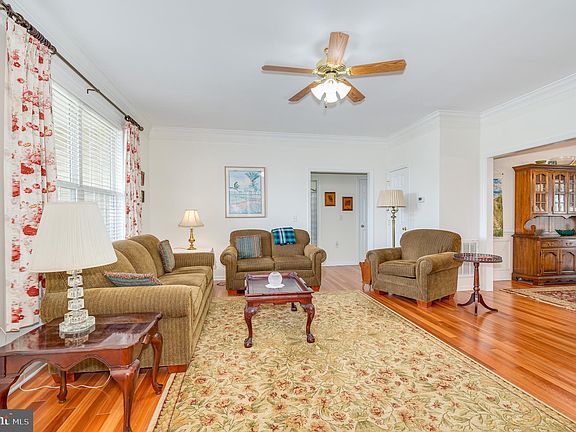 Welcome to this beautiful rancher with 2848 sq. feet of living space. New heat pump installed May 2024. Kitchen with quartz countertops and subway tile backsplash. All appliances convey-New stove. Washer and dryer convey-New washer. Beautiful wood floors in living room with fireplace, dining room, kitchen, and sunroom. Crown molding and wainscotting. Sunroom opens to a great deck and pergola with New Trex installed in the past year. Spacious bedrooms. Master bedroom with trail ceiling and molding, soaking tub, and walk-in closet. Beautifully finished basement with great room and 3 extra rooms all with closets, a full bath, and extra unfinished space housing water heater, water softener with filter, and extra storage. In addition to the heating from heat pump, basement rooms have baseboard heaters. Separate utility room with sump pump and back up. New double French doors lead from basement to walk up stairs. This house offers plenty of storage space with 10 closets. Oversized garage with extra refrigerator, shelving, and organizational peg boards and hooks. Storm doors on front and back door. Beautiful landscaping. Fireplace professionally cleaned February 2024.