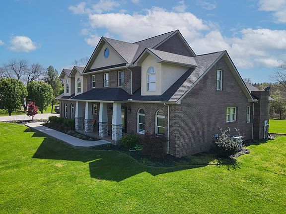 Situated on a large 2 acre lot in the Heritage Place development, this stunning brick home offers exceptional curb appeal. Boasting 3 finished levels and a long list of updates throughout! The main level features your master suite with an unbelievable bathroom, showcasing gorgeous tile work, a double shower, free-standing tub, and double vanity! Along with a large living room with a fireplace and vaulted ceilings, an attached garage, laundry room, and beautifully updated kitchen that offers an abundance of cabinets and storage space! Upstairs features 4 more large bedrooms, a ton closet place, and 2 full bathrooms!! The full basement is finished and features a second living room with a fireplace, a large bonus room with a full bath (can be used as a 6th bedroom) and an additional utility garage. Your backyard offers a nice deck with a recently installed above ground pool.. making this home the total package!! Located close to town and in a sought after neighborhood.