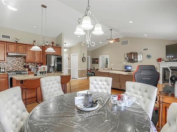 A/o. Bright, light and open concept. Sit by your fireplace in your great room and marvel at your soaring ceilings. This house has it all, and no detail was left undone. You will love the Maple cabinets and granite countertops in your kitchen, which has sliders leading to your private back yard. 2 walk in closets in the master bedroom, porcelain tiles, Hardwood, tray ceilings and crown moldings are just a few of the extra special touches that you'll see throughout this flawless home Truly turn key!. Two sheds on the property. one is 24 x 24 and can fit 2 cars & the other is 32 x 14. PLUS the 2 car attached garage. The oversized driveway for plenty of cars, completes the endless parking options and top off this one of a kind home. Built in filter for the drinking water, and water softener. CAT 6 wiring, alarm system, partially finished basement with a 4th room that is technically considered an office but could be a 4th bedroom.