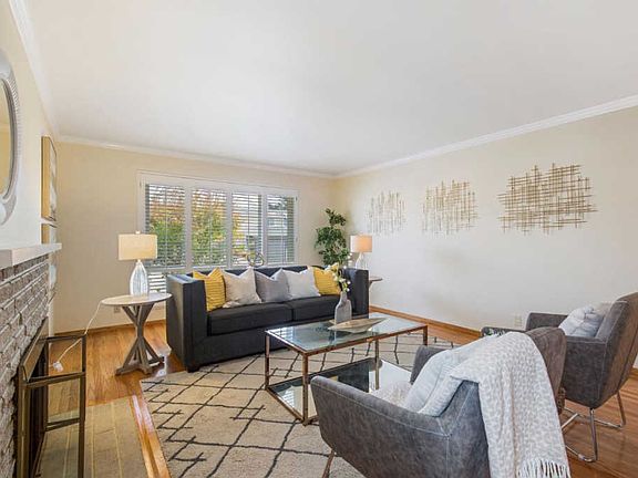 Your heart will warm when you see this 3-bed, 2-bath home with curb appeal. The living room with a large window, with sunlight controlled by hardwood shutters. The brick fireplace is the heart of the room. Crown molding and hardwood floors enhance the ambiance. Kitchen with cherry cabinets and granite counters strike immediate appeal, and with stainless appliances. Recessed lights and a skylight reflect off a tile floor. Pendant lights hang over the eat-at bar on your peninsula. Elegant tiled backsplash. You will love the gas stove and the wall of cabinets that will store everything a gourmand needs. Family room is a great place to hang out, with a large glass sliding door leading out to the back patio. The back yard also has a wonderful Trex deck. Two-car garage, and double pane windows. You will be across the street from the Killdeer Park entrance, and near the Bay Levee Pedway. Great Foster City schools! Twilight Tour: 9/27 from 5:30-7pm. Open House: 9/29 & 9/30 from 1-4pm.