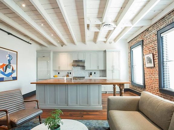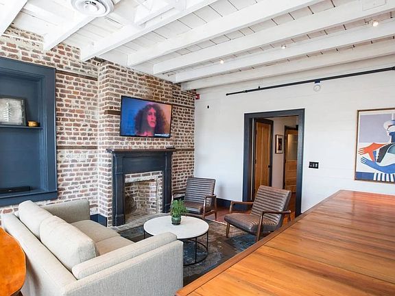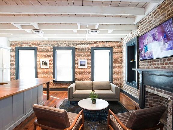 Rent this unique, fully furnished 2-bedroom, 2.5-bath apartment in the heart of downtown Charleston. Situated on the second floor of a beautifully renovated historic building on King Street, this apartment seamlessly combines modern design with classic Southern architecture. The primary bedroom features a queen-size bed, flat-screen TV, and a ceiling fan for your comfort. The secondary bedroom offers two queen size beds with ample space for guests and storage. Both full bathrooms are equipped with walk-in showers and elegant tile work. The spacious living room, overlooking vibrant King Street, includes a 60-inch HDTV and connects to a sleek kitchen with stainless steel with over size island and Thermador appliances. Utilities included, 1 off street parking in covered lot included,
