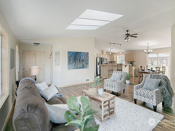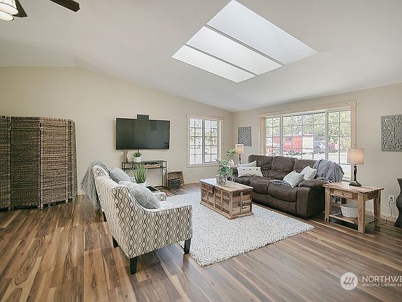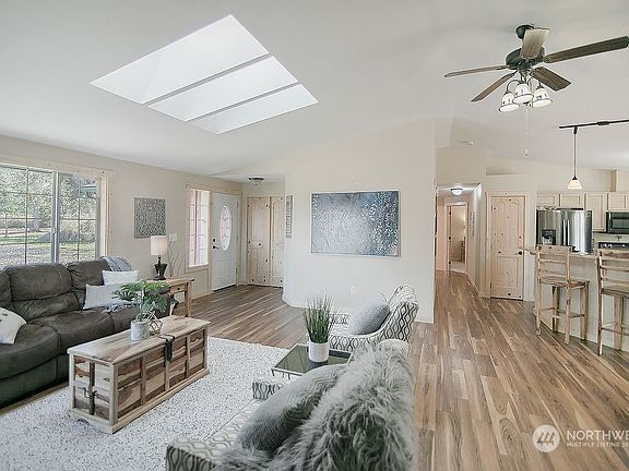 Onalaska -- 10 ACRES -- 2160 Sqft -- 1 Level -- 4 Bedroom / 2 Bathroom -- Open Living Room -- Kitchen w/ Black Stainless Appliances, Island, Eating Area & Pantry -- Dining Area -- Primary Bedroom w/Full Bathroom & Walk-in Closet -- Laundry Room PLUS Utility Mud Room -- Vinyl Windows -- Vaulted -- Skylights -- Double Garage -- Patio -- Gazebo -- Trees -- Flat Usable Property -- Circular Driveway -- Garden Space -- Pasture -- RV Parking & Hook Ups -- Plenty of Room for SHOP -- Approximately 10 minutes to I-5 w/ Easy Commute to Vancouver/Portland Area or Centralia/Chehalis & Olympia Areas