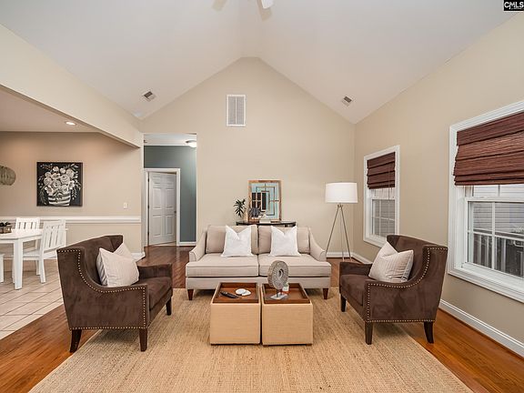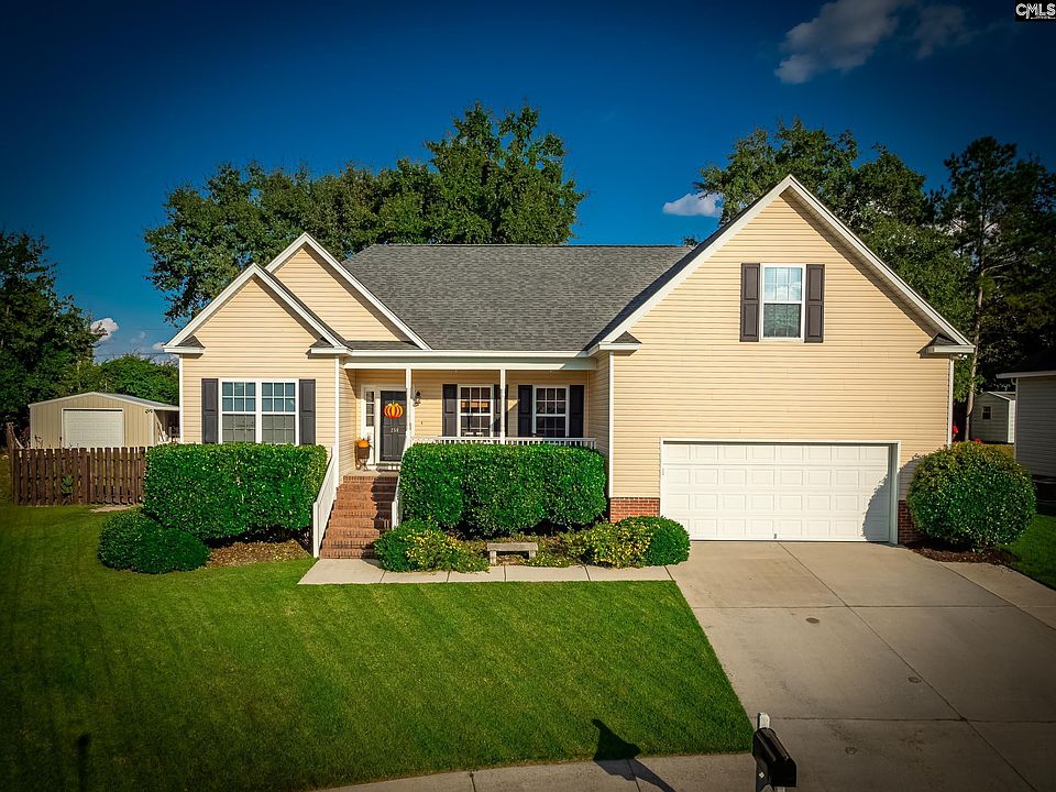 Gorgeous one and half story home nestled in the quiet community of Cunningham Park. Private saltwater pool and cul-de-sac location make this home one of the best lots in this family friendly neighborhood! Built in 2007, this one-owner home has 4 bedrooms, 3 full baths, in 1754 sf. Great room with soaring vaulted ceiling includes a cozy fireplace and open flow to the kitchen. Eat-in kitchen with tile flooring and pantry. 3 bedrooms are located on the main level, including the master suite with private bath and walk-in closet. Second level includes the fourth bedroom- a large bonus room with a closet and its own full bath. This home has been lovingly maintained with recent updates including: 2018new American Standard AC, 2018 architectural shingle roof, 2021 SS kitchen appliances, 2021 new carpet, Reverse osmosis system with faucet in kitchen that supplies water to kitchen refrigerator, Well operates sprinkler and outside spigots, 288 sq.ft. covered back porch, 18x20 shed with 10 lean-to. Shed has power and overhead door with opener, 14x28 saltwater pool with safety cover, solar cover, and new liner, Pump house for pool with half bath, Driveway widened 4, AND Under termite bond with Terminix! All of this is zoned for award-winning Lex1 schools (Oak Grove, Meadow Glen, River Bluff). Conveniently located near I-26, Downtown Lexington and Columbia. Homes in this community don't come up for sale often, so scoop this one up before it's gone!