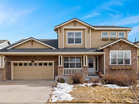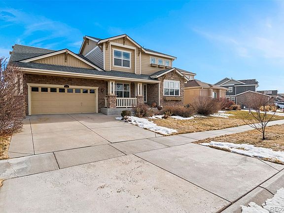 An abundance of square footage! Step into the inviting great room featuring soaring ceilings and a cozy gas fireplace. The main level is highlighted by a luxurious master suite, complete with a five-piece bath and a massive walk-in closet. The kitchen is a chef's dream, equipped with high-end appliances that are all included. Need a home office? You’ll find one conveniently located near the front door. A formal living area, which could easily double as a dining room, offers additional versatility. Upstairs, you'll find three generously sized bedrooms and a full hall bathroom. A charming loft bridge on the second floor provides a stunning view of the great room below. Looking for more space? The recently finished basement offers endless possibilities - use your imagination. Two large bedrooms, one featuring a private ¾ bath. A powder bath downstairs adds extra convenience. NEW ROOF and GUTTERS! Located just 10 minutes from Buckley AFB and 15 minutes from DIA, this home is perfectly situated for easy access to nearby shopping, dining, trails, and major routes like I-70 and E-470, making commuting to Denver a breeze. Don’t miss out on this incredible opportunity! 100% financing programs with no PMI available for this home - call for details.