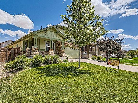 Open Ranch floorplan with vaulted ceilings in many rooms. New Roof, New Carpet and Paint. 3 bedrooms, 2 baths, Refrigerator new in 2022, Fenced backyard, Located in the heart of the community 1 block from ball fields and schools. Quiet interior location yet easy 6th ave and E-470 access. Pool community, neighborhood parks nearby. Ready for quick closing and possession. Full open basement with rough in plumbing is ready for future finish. All appliances included-even washer and dryer.