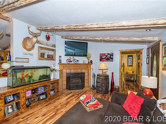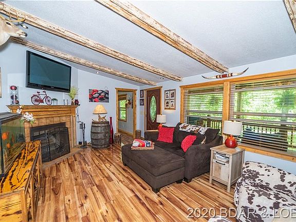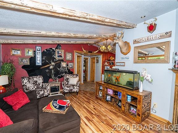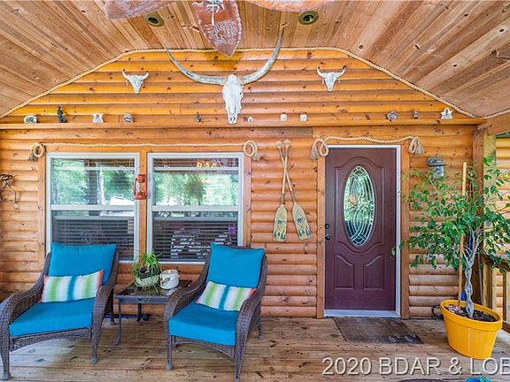 Do you love a log cabin? Do you love the country, but want to be close to town? Then this log cabin is the answer! Tucked back on almost 3 wooded acres down a private drive, this peaceful and idyllic country setting is literally 3 minutes from Highway 54. The home was completely gutted and remodeled in 2006 with log siding, new roof, new flooring including subfloor, kitchen cabinets & counters, lighting, vinyl windows, wood blinds, etc... A large covered porch was added providing a serene extension of living space, and a back deck spanning the length of the home adds additional entertaining and relaxation as well. This home has been meticulously maintained with most recent updates including 2019: brand new AC, fresh paint throughout, front porch re-stained, master bath update, kitchen flooring; 2018: new gutters, kitchen appliances and wood laminate flooring in living. This home is worth the visit, and you may just want to kick back on the porch and stay!