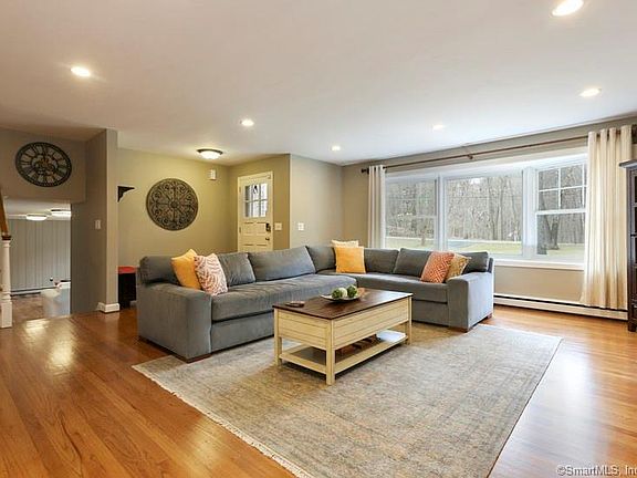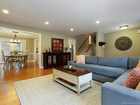 Location, Location, Location. Set back on nearly 2.0 acres of flat property, this split-level colonial home is freshly painted with many updates located in desirable South Wilton. The spacious formal living room has a beautiful fireplace and picture window offering an abundance of natural light Formal dining room with french doors and an eat-in kitchen. Step down to the family room with built-in shelves, laundry room, first floor bedroom and full bath. Master bedroom with full bath and walk in closet plus two additional good-sized bedrooms and an additional full bath complete the upper level. Don't miss the finished lower level with walk-out, perfect for a playroom or home gym. Enjoy the outdoors with a screened in porch, patio and beautiful park-like backyard. Perfect for barbecues and family gatherings. Additional features of the house include hardwood floors, central air, security system and updated mechanicals. Convenient location, close to town, trains and major highways. It's a commuters dream