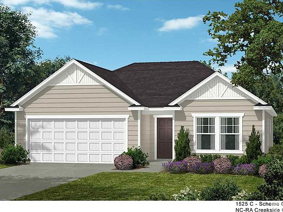KB Home presents the Robinson ranch style home! The last corner home site in Creekside. Exterior boasts vinyl & stone finish. Open floor plan, granite counter tops, laminate flooring & tile throughout! Staggered white kitchen cabinets, a 7x3 social island to entertain, loaded with cabinets & drawers! Energy Star Whirlpool appliances! Split bedroom floor plan offering tons of privacy in the master quarters, huge walk in closets, oversized tile shower with a seat!