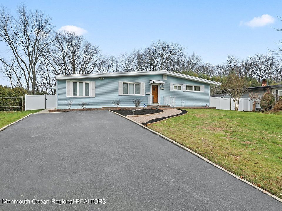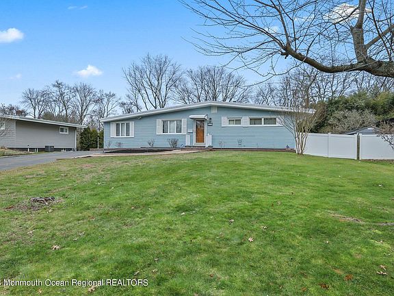 Welcome to Lovely Lincroft! This charming ranch-style residence encompasses four bedrooms and two full baths, offering a perfect fusion of comfort and style. Large master bedroom addition offers a walk in closet and full master bath. The heart of the home, the eat-in kitchen, boasts stunning granite countertops and black appliances. A standout feature of this property is the expansive yard, providing a sprawling outdoor space for various activities, and a large composite deck overlooking the beautiful property. The fully finished basement adds valuable square footage to the home, creating a versatile space that can serve as a recreation room, home gym, or an additional living area—offering endless possibilities for customization. Minutes to schools. shopping and GSP.