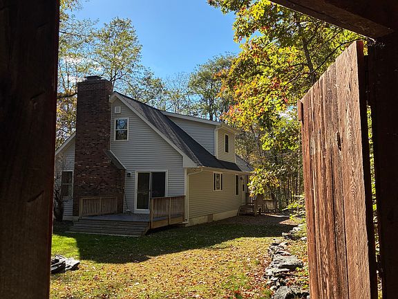 Recently renovated Cape on private setting with lawn and barn. Open kitchen/dining area with slider to Trex deck. Living room with brick fireplace, ensuite bathroom with shower on first floor and two additional bedrooms and full bathroom with tub upstairs. Full walkout basement with garage door.