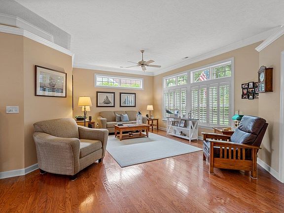 You will feel right at home in this lovely house in the Pebble Creek section of International Club. As you enter you will notice how the open floor plan and transom windows create a bright and airy feel. Plantation shutters adorn the windows throughout. You can see that the home is clean and well maintained with a new roof and HVAC system in 2019. Crown molding adds that extra detail to the entire main floor with accent lighting above the plant shelves for a soft glow in the evenings. The eat in kitchen opens into the Carolina room with a picture perfect view of the golf course at the second hole tee box. A split bedroom floor plan on the first floor gives guests and owners privacy with a 4th bedroom/bonus room on the second floor. Your primary bedroom features two walk in closets and the en suite bath has a double sink with 42" cabinets, a large garden tub and separate shower. Need extra storage? There are pull down stairs in the laundry room leading to 19' x 8' floored attic space. As an extra bonus, the community pool and club house is just down the street. Close to shopping, Huntington Beach state park, Brookgreen Gardens and, of course, the beach! All measurements are approximate, buyers to verify.