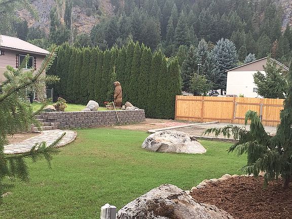 Fantastic location in the heart of downtown Leavenworth! This beautifully remodeled home sits on a large .20 acre corner lot with mountain views. Upgraded kitchen features granite, stainless Samsung appliances, tile backsplash, ample cabinet space and worry-free LVP flooring. Full bath and 2 large bedrooms above including master with his and hers closets. Expansive bonus room below to suit your needs with 3/4 bath and storage/utility room. Fully-fenced backyard offers deck with retractable awning, professional landscaping and plenty of room to relax and play. Both attached garage and RV Pad.