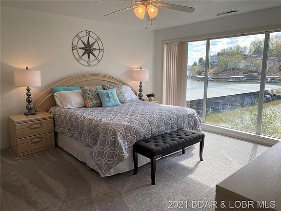 Located off of StRd HH, 12 Mile Marker, Osage Arm. Find your New Happy Place in spacious 1166 SqFt end unit which is not your typical rectangular condo. TURN KEY purchase. Open floor plan,1 flight down from Prk'g. 2Bed/2Full Bath. Walls of lake frt windows lots of natural light & keep an eye on Boat-just a few steps from condo. Cozy Liv'g Area w/angled Frplc, enjoy the lk view from comfy leather furniture. Big tiled screen LkFrt deck. Oversized Lk Frt mast bdrm w/walls of windows. Cute 2nd Bdrm w/dbl glass library doors for lake view, 2 lrg closets, priv entry to jack & jill Bathrm. Updated Kitch w/SS appliances, glass tiled BckSplsh, pullout cabints, brkfst bar & DinRm. Lrg Laungry rm, lots of Storage at back of unit. Patio for BBQs, Great Location by car or boat to the Good Life. Lots of Prk'g. Few steps to Swim Dock, Lk Frt Pool or Hilltop Pool @ Club House.New lush carpet in Bdrms. Amenities: Pools, Tennis, Pickle Ball, Picnic Pavilions, Playgrd, Dog Areas. See EXTRA FEATURE SHEET