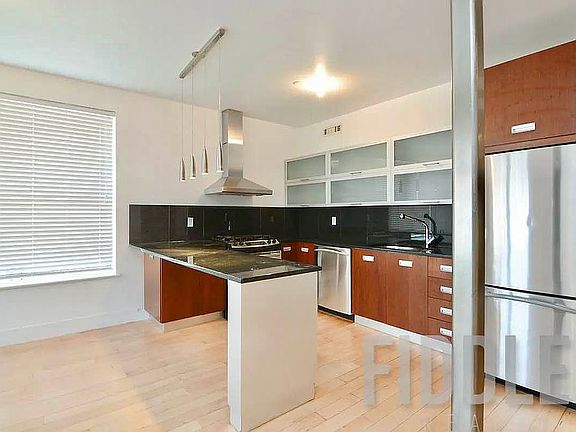 Duplex with 2 large bedrooms and full bathroom on upper level and 2 rooms on lower, one without windows + full bathroom! Terrace/ little backyard off of one of the bedrooms on upper level Kitchen island with dishwasher + stainless steel appliances NO FEE!