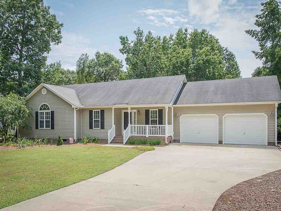 Beautiful Ranch home minutes from 40/42. Great open floor plan with large fenced in yard. Home has a 2 car garage as well as a shed for ample storage. Dual vanity in master bathroom. Vaulted ceilings in family room. Beautiful spring flowers planted throughout that come back every year. Washer and dryer included!