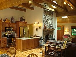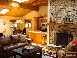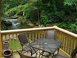 Enjoy the relaxing sounds of the New River from every room of this lovely cabin! The home features an open living area with skylights, artful accent lighting, leather furnishings, a stereo with an iPod dock, a remote controlled gas log fireplace, a 42-inch flat panel HDTV with BluRay player, DVD and an Xbox (with a selection of movies and games), a dining area with two tables, one seating six and another seating four, each overlooking the river, a rustic wooden desk, and a fully-equipped kitchen with stainless steel appliances and granite counters. A master bedroom with queen bed and cable TV with DVD player and a private bath with a Jacuzzi tub and separate shower is off the main living area, and there is a second bedroom off the main level as well. There is another full bath with shower off the main area. Out on the upper deck, there is a gas grill and a table for four overlooking the river. On the lower patio, the soothing hot tub and rocking chairs await, surrounded by privacy fencing and the sights of the river a few feet away. There is a small level yard area, edged by a retaining wall by the river, which is great for young children as well. Soak in the river and cool off on a warm day, or just relax while you cast your lure into the river and reel in the big one--the trout fishing is reportedly excellent. Perfectly located between Boone and Blowing Rock, this lovely riverside cabin is the perfect retreat from life’s hectic pace. Very convenient to Downtown Blowing Rock (7 miles), Boone (2 miles), ASU (3 miles) Tweetie Railroad (1.4 miles) and Appalachian Ski Resort (2.5 miles), and convenient to all other High Country Attractions. Make Rippling Water Retreat your getaway home today!